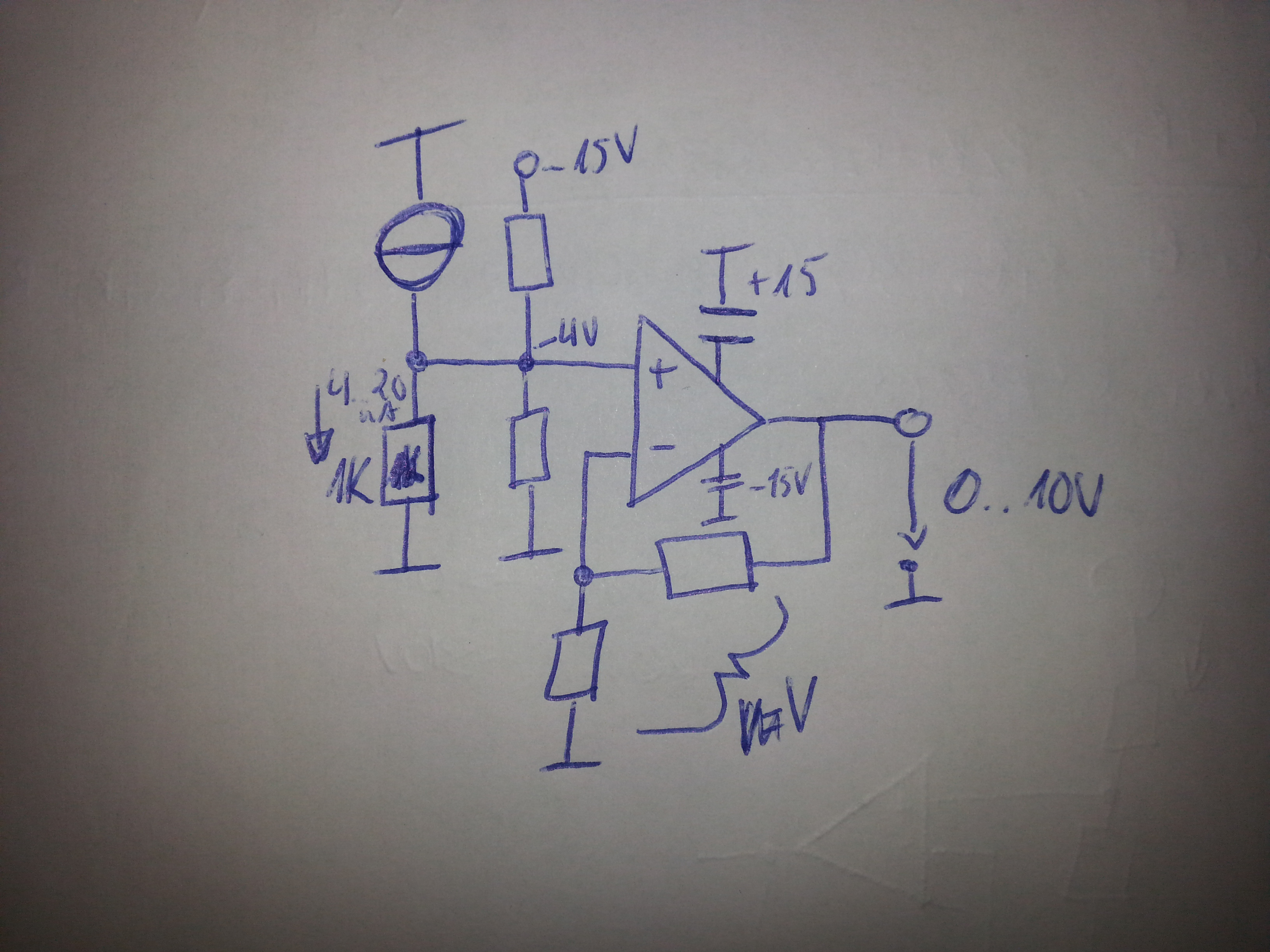 Ja, schon klar, aber wie erreiche ich erst bei einem Strom von 4mA bzw. einer gewissen Spannung eine Ausgangsspannung von 0V?