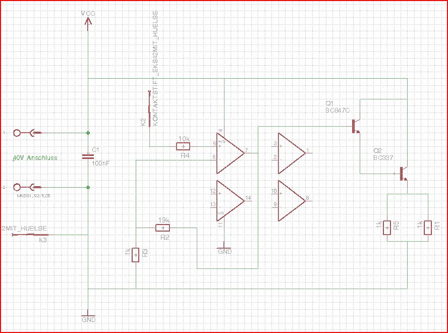 19V über 500 Ohm macht 38mA, der Rest der 40V, also 21V, bleiben im Transistor, sind 0.8 Watt, da platzt der BC338 doch. Ausserdem würde man R2 am Emitter des Darlingtons anshliessen, damit nicht dessen ca. 1.6V Spannungsabfall dazukommen.