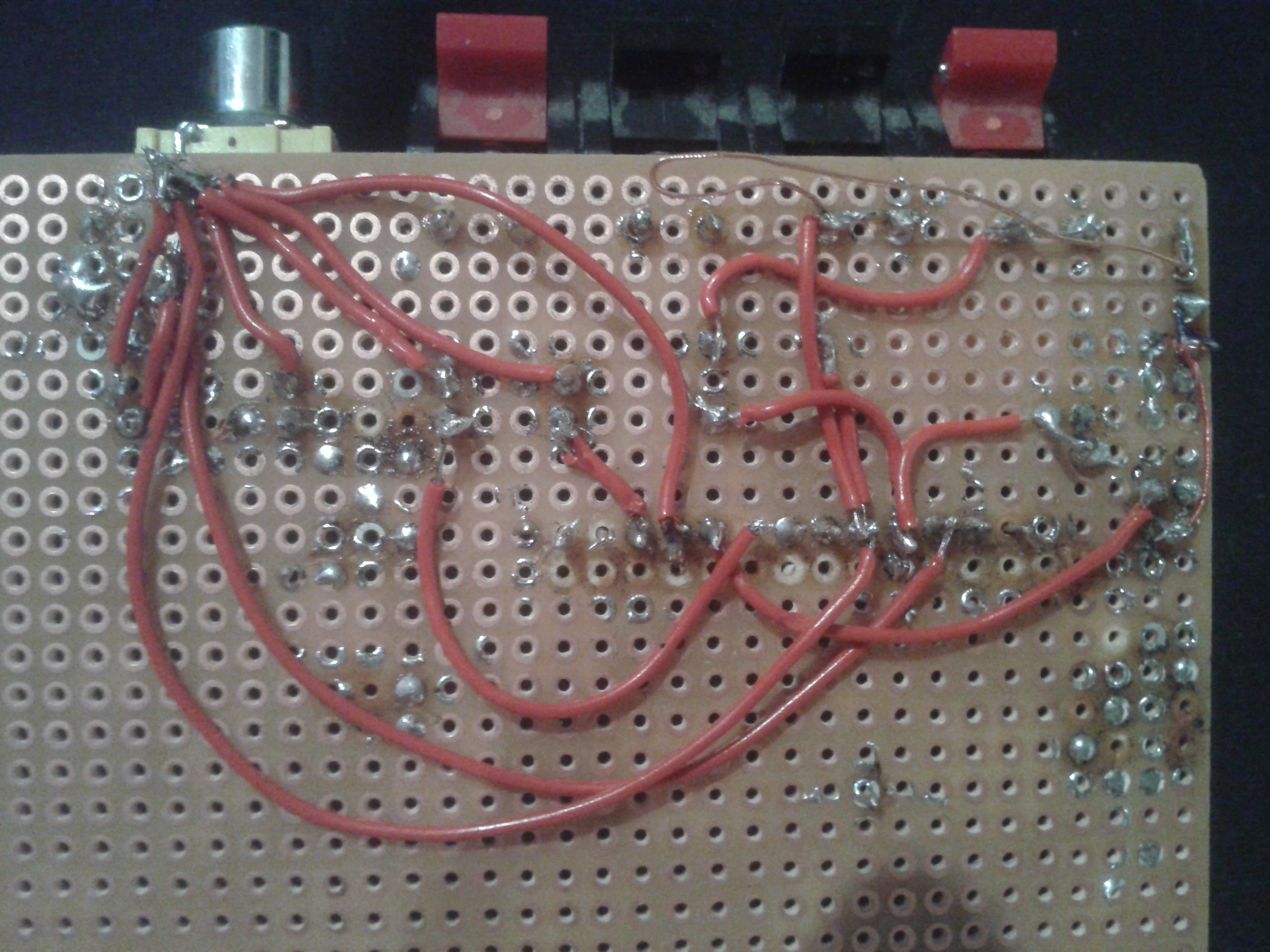 Hier ein Bild von der Schaltung, das Problem wurde durch sternförmige Masseführung leider nicht behoben.