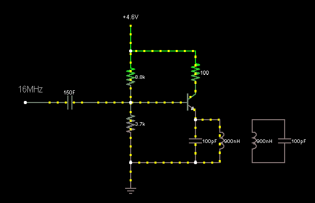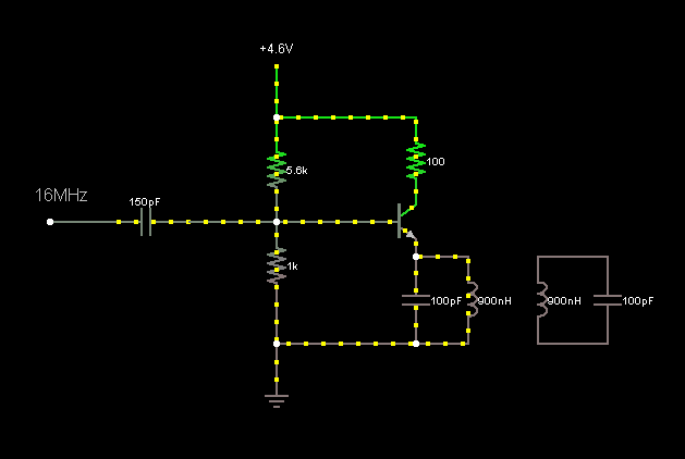 Hallo, ich möchte gerne einen Transistor verwenden um den Strom von einem Oszillator zu verstärken und dann durch eine Spule das Signal auf einen Schwingkreis übertragen. Doch wie genau mache ich das? Habe mal meinen bisherigen Versuch aufgebaut(Angaben zu den Bauteilen stimmen natürlich nicht (die Oszi Frequenz ist 16MHz, Transistor ist ein bc547b).