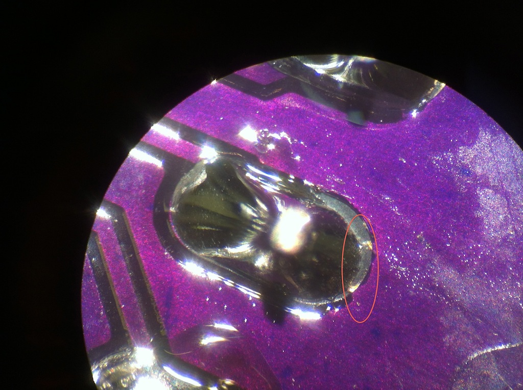 Hi, meine Boards sind nun gestern ebenfalls angekommen, von der Laufzeit und dem Ablauf alles wie beim Vorredner. Boards machen auf den ersten Blick einen sehr guten Eindruck. Hab natürlich gleich angefangen zu löten hatte prompt schone einen Kurzschluss in der Schaltung. Nach genauerem Hinsehen ist mir aufgefallen dass der Lötstoplack nicht ordentlich abschließt und darüber hinaus das Kupfer herausspitzelt. Das macht natürlich fröhlich Kurzschlüsse, vorallem wenn man mit sehr vielen kleinen Bauteilen (z.b. 0603) arbeitet. Hab den Jungs von OSH Park nun geschrieben und bin auf die Antwort gespannt, für mich ist das Board so nicht verwendbar. Habs nun zwar nach 2 Stunden zum "laufen" bekommen aber es sind noch immer falsche Brücken im Spiel :( Im Anhang findet ihr noch ein paar Bilder. Gruß Bernhard