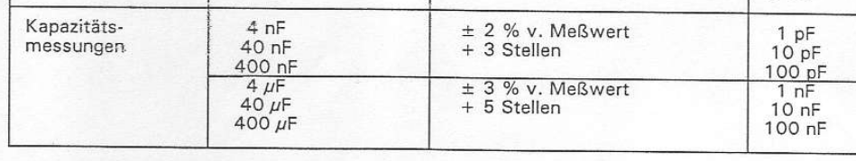 MT schrieb: aneben. > > 2% Genauigkeit von was? Vom angezeigtem Messwert oder vom > Messbereichsendwert? > > Nehmen wir das günstigere an (Messwert), so ergibt sich (wahrer Wert = > 0.5uF): > C = 0.5uF +-2% +-20D = (0.5 +-0.01 +-0.02)uF = 0.53uF oder 0.47uF > > So weit daneben ist die Anzeige also nicht. > Hat der C sogar wirklich -0.5%, "fehlen" für den unteren Wert nur 0.5nF. Ist da nicht ein Kommafehler? Hatte ich nicht exakt in Erinnerung: siehe Bild. Also %3 v.M. + 5 Digit Bei dem einen der beiden Meßgeräte. 500nF - 3% -5D = 500nF - 15nF -5nF = 480nF max. Anzeige aber 467nF Also eine Abweichung von ca. 3% anstatt von 0.5% Hhm. Evtl. tatsächlich im Rahmen, obwohl 3% doch ziemlich viel wären. Dazu kommt aber, dass mein Messgerät ebenfalls eine Alterung erfahren hat. Ist auch bestimmt >10 Jahre Hilft evtl. nur ein produktionsfrischer engtolerierter Kondensator...