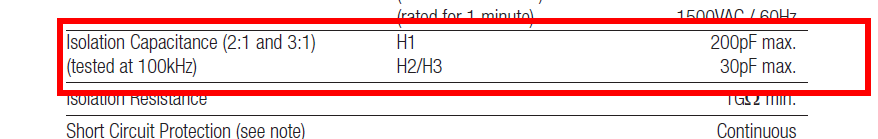 Auch diese Wandler übertragen AC über ihre Isolation, da sie eine kapazitive Kopplung haben, siehe Datenblatt-Ausschnitt.
