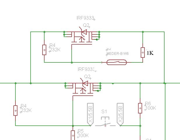 @ Max (Gast) >> Vielleicht ist ihm der Strom zu hoch und er verschweisst? >das denke ich nicht da Ich schon. Deine Schaltung hat Kondensatoren, die sind ungeladen ein Kurzschluss, der Pulsstrom verschweißt die Kontakte. >die Schaltlast müsste er doch schaffen max. 8,4V bei 0.4 A.? Nein. Siehe oben. Schalte clever. Siehe Anhang. Damit schaltet der Reedkontakt nur den Spannungsteiler und nicht die interne Versorgung und hält ewig.