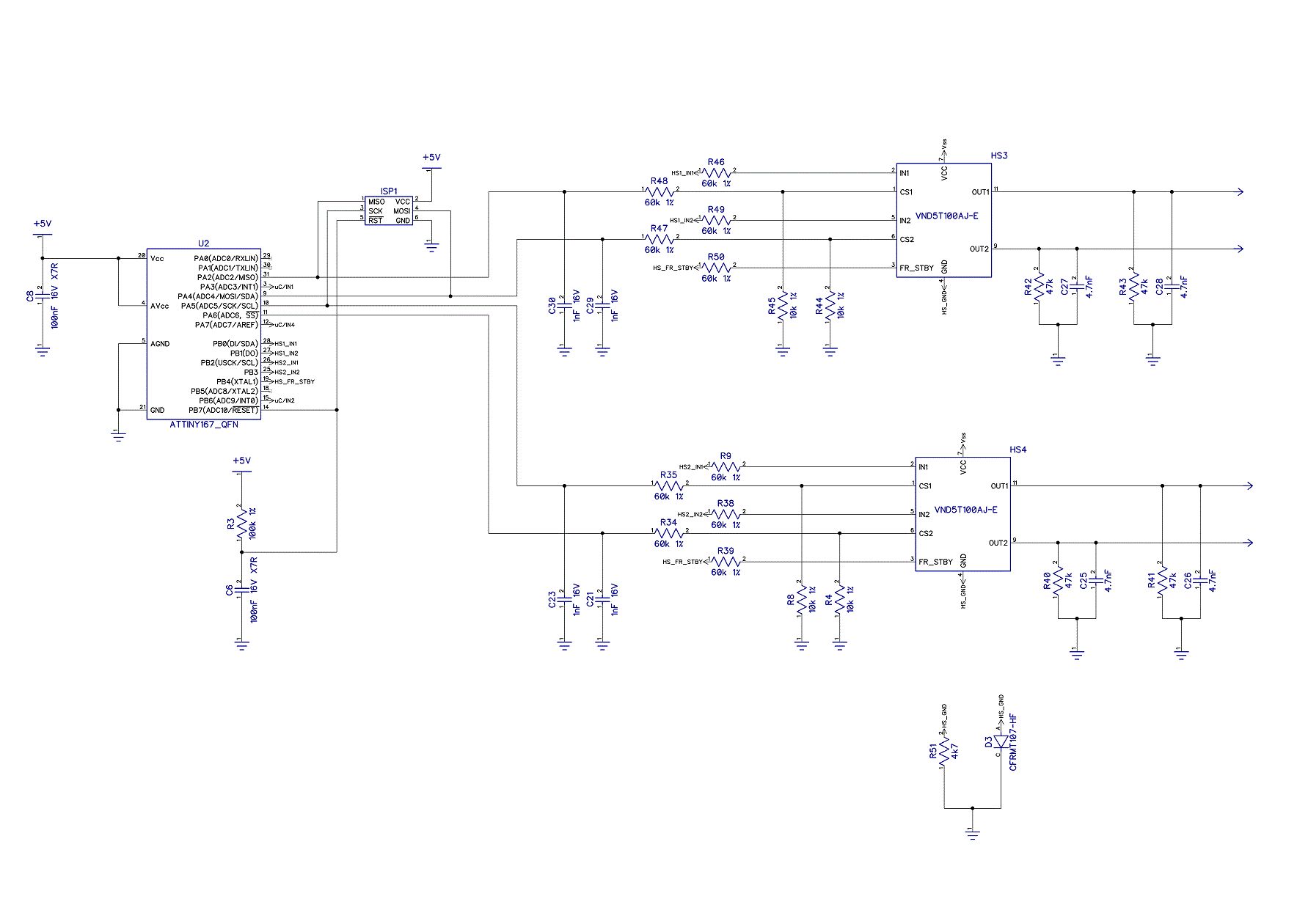 Hallo, ich habe folgendes Problem, dass ich nicht genügend Pins am uC vorhanden haben werde, sobald der Schaltplan fertig ist. Daher muss ich den SPI, den ich zur Programmierung nutze, doppelt belegen. Jetzt habe ich versucht mich möglichst gut zu informieren, jedoch bin ich mir trotzdem unsicher. Könnt Ihr vielleicht den Schaltplan anschauen und mir sagen, ob es so funktionieren würde? Ich bin mir nicht sicher, aber ich glaube die Kondensatoren an MISO, MOSI und SCK würden die Programmeirung stören. Die 60k Widerstände (aus dem Datenblatt) müssten eigentlich keine Probleme machen oder? Alex