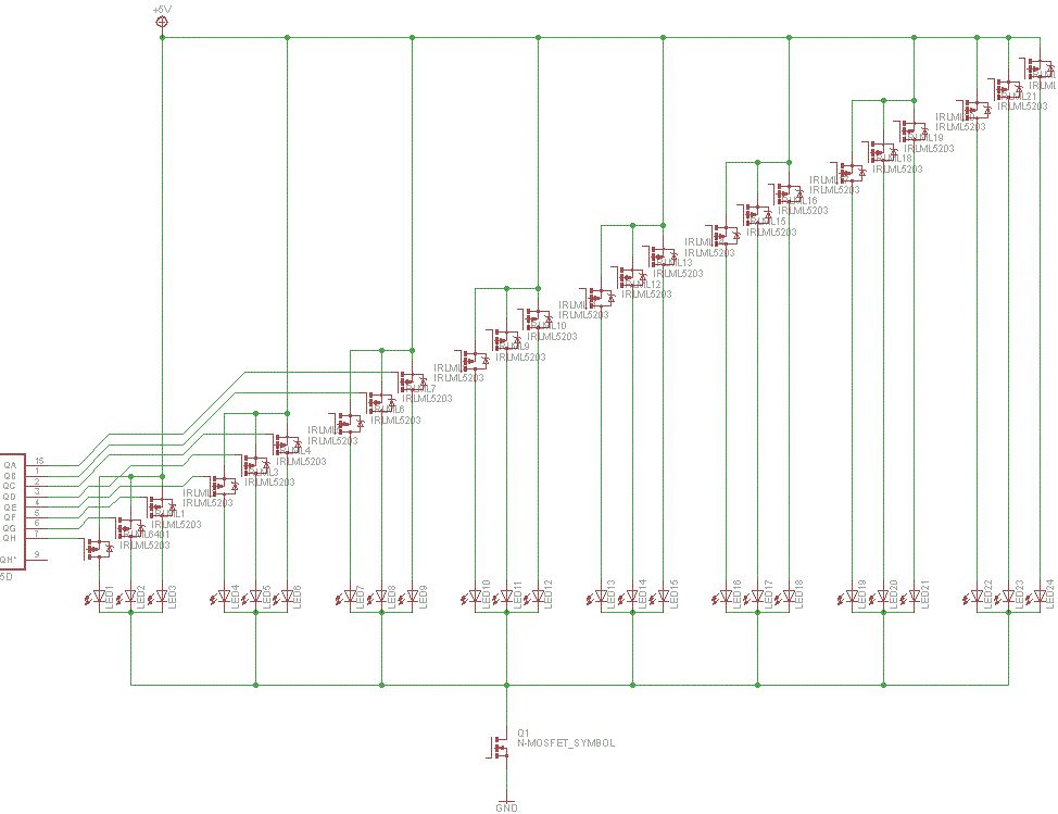 @ Christoph (Gast) >Ich will eine RGB-LED-Matrix beschalten und jede einzelne LED voll >ansteuern, ohne Multiplexing. Wenn man mal VORHER etwas nachdenkt und ggf. nachfragt, kauft man vielleicht passendere Bauteile. Nämlich RGB-LEDs mit gemeinsamer Anode, die kann man nämlich super per TLC5940 & Co ansteuern, alles in einem IC, incl. Dimmung und PWM. und man spart 192 Vorwiderstände, die ja bekanntlich extrem teuer sind . . . >Kann ich die Mosfets so nackig zwischen 74HC595 und LED einsetzen, Ja. >oder >brauchen die noch Widerstände zwischen Gate und Source? Nein. >Die >Schieberegister müßten eigentlich für sauere Pegel sorgen, Ja. > oder bin ich da auf dem Holzweg? Nein.