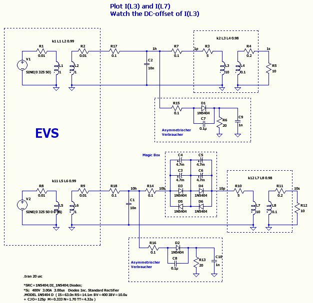 Um Gleichspannung im AC-Netz zu erzeugen, braucht es z.B. einen Fön, welcher auf halber Stufe läuft: Damit wird per Diode nur noch eine Halbwelle des Netzes belastet. Zusammen mit dem Innenwiderstand der AC-Quelle und der Last aller Haushalte nach der Trafostation ergibt sich am lokalen Anschluss ein Gleichspannunsanteil, welcher als DC im Trafo in Erscheinung tritt. Dieser DC bewirkt eine einseitige Vormagnetisierung, was zum genannten Effekt, dem Brummen, führt. Wer's nicht glaubt, einfach mal ausprobieren. Besonders gut funktioniert das bei Ringkerntrafos und nein: Schaltnetzteile brummen nicht. Die produzieren eher selber Gleichspannung im Netz. Oder fiepen. Praktiker schrieb: > Und woher sollte ein Gleichstromanteil kommen? Vor deinem Trafo ist > schließlich hinter der Trafostation für die 230V-Versorgung. Und falls > da nicht jemand überall wohlgeordnete 1-Weg-Gleichrichter ans Netz > gehängt hat, sondern die zumindest statistisch verteilt draufsitzen, > gibt es keinen Grund für einen Gleichanteil. Du war'st sooo nah dran!