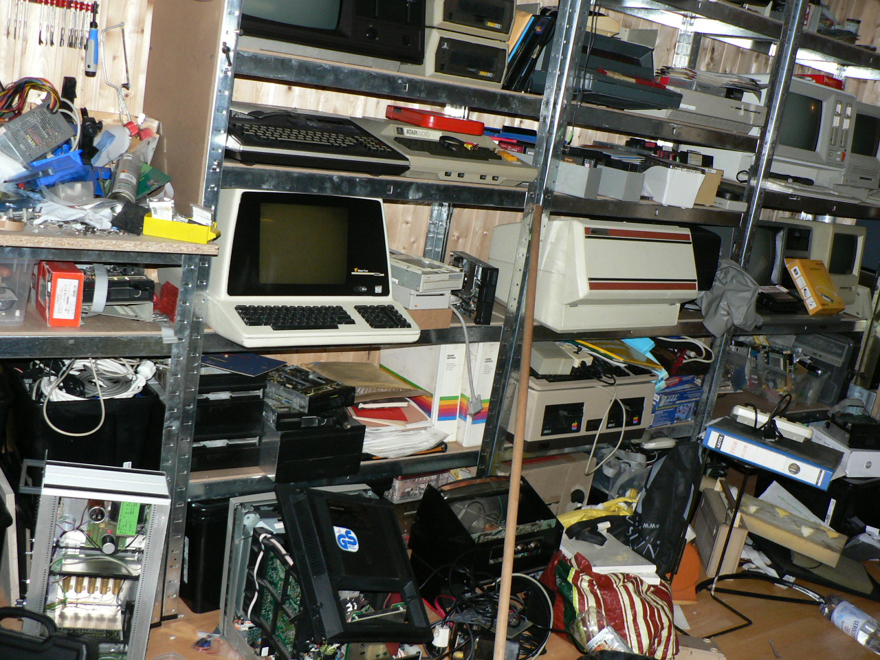 a. b. schrieb: > Der Kenner wird ahnen, wo mein Hobbyschwerpunkt liegt ;-) Goil, da ist jemand ein Vintage Atari Fan, hehehe. chaos2.JPG lässt darauf schliessen, das du mit Robotern die Welt erobern willst :-) Im mittleren Regal, 2te von unten, ist das ein selbstgemachter Apple ][ ? Und ganz hinten sehe ich auch noch einen SE - und einen Plus... Hach, die hatte ich auch mal...