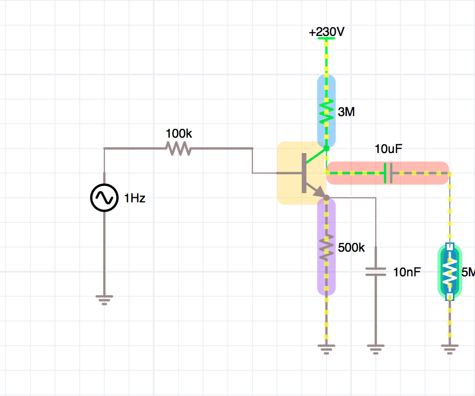 Dein Simulator ist nicht viel besser. Der dürfte nur eine Halbwelle verstärkt zeigen. Und die nur solange sie Ube+Ure übersteigt. BTW, Transistoren hat man erfunden, damit weniger Ings. in die 250V beißen müssen (Gras wäre irgendwie der falsche Begriff), sonder mit 12V arbeiten können. Vielleicht war das aber auch von der Netztrafo-Lobby gesponsert worden, da Röhren notfalls ohne einen solchen laufen. Ich Sage nur Pxnn(n) Serie.