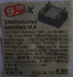 Christoph K. schrieb: > Ein Foto gibts bei ebay: Ja, ich sehe es sogar im Original. ;-) Trotzdem Danke Das einzige was ich mehr weiß, ist das es scheinbar im Nulldurchgang schaltet. Ein Zettelchen war auch dabei. Gruß Andreas