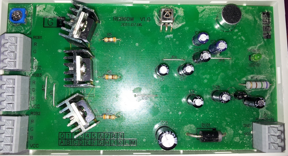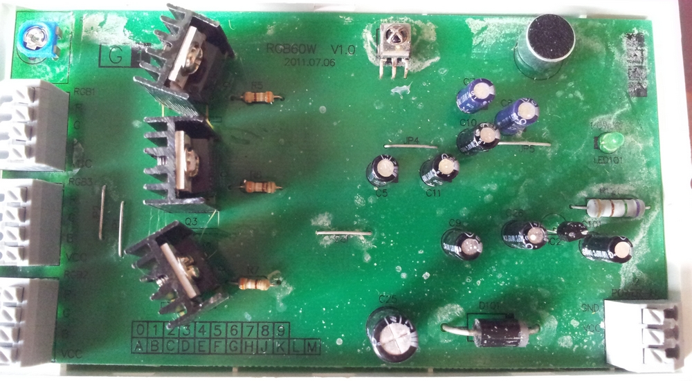 Heyho, ich hab mir diesen "Music IR Controller" gekauft. (http://www.amazon.de/RGB-Controller-mit-IR-Fernbedienung-und-Musikste/dp/B004IRMFJK) Nun hab ich das Problem das mir das Mikro immernoch zu empfindlich ist.(ist schon auf die geringste Stufe eingestellt) Jetzt wollte ich mal nachfragen ob man einfach einen anderen Potentiometer einbauen kann, der Poti dürfte ja eig einfach den Stromfluss für das Mikro begrenzen oder? Allerdings ist das nicht direkt vor dem Mikro geschalten, sondern ich glaube über irgendwelche anderen Bauelemente. Hab den Widerstand vom Poti durch gemessen und kam auf folgendes Ergebnis -> auf empfindlichster Stufe: 500k Ohm, auf unempfindlichster Stufe 500 Ohm. Bin mir aber nicht sicher ob das so Stimmt, da mich das Multimeter verwirrt hatte :D. Also es hatte aufjedenfall bei der empfindlichsten Stufe folgendes angezeit -> Messbereich war auf 2000k eingestellt und er zeigt mir ca 500 auf dem Display an. Darunter kam dann der 200k Messbereich und da hatte er halt overload. der Poti ist leider nicht beschriftet. Ist aber ein "RKT6V". Ich hoffe ihr könnt mir da weiterhelfen, hab noch paar Bilder hinzugefügt. Vielen Dank im Vorraus :)