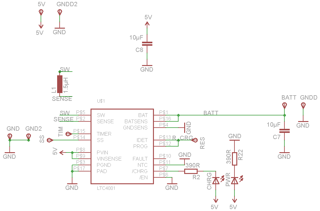 Hallo, ich bin gerade dabei einen super kompakten 2A Li-Po Lader zu bauen nun habe ich erst einmal eine Versuchsplatine gebaut und muss feststellen das leider nichts geht... Also um genau zu sein geht schon etwas, aber nicht wie es soll. Ich benutze einen LTC4001 (http://cds.linear.com/docs/en/datasheet/4001f.pdf). ich muss feststellen, dass der Lader bei 744mA ausschaltet und nicht weiter macht. Alles was unter 744mA ist funktioniert. sobald ich aber drüber gehe schaltet der Lader ab und die Lade LED bleibt aber an. ich habe es mit zwei Chips versucht, da ich dachte es liegt am Chip doch der andere verhält sich gleich. Der Chip wird nicht merkbar warm. Kleiner Versuch für etwas anderes komisches: Ich benutze momentan ein Potentiometer. Die Spannungsversorgung hat eine einstellbare Strombegrenzung drin und wenn ich diese auf 5mA runter drehe springt diese ein und regelt die Spannung runter. Der LTC4001 ist auf 1100mA eingestellt. Nun drehe ich langsam die Strombegrenzung hoch und der Strom der in den Akku fließt steigt entsprechend mit an. Sobald ich aber über 1100mA komme und die Strombegrenzung nicht mehr gilt(bedeutet die Spannung ist glatte 5V), schaltet es wieder in den stromlosen Zustand mit Lade LED an. Ich habe wirklich keine Idee mehr was es sein kann. Bitte helft mir! Ein Paar weitere Infos: Der Softstart ist 100nF der Timer ist 300nF IDET und PROG Pins sind verbunden und an Potentiometer angeschlossen. Für die Stromberechung gilt: 554,9475/R = Ladestrom (Seite 10) Die Spule ist geschirmt und sollte groß genug sein. Ich glaube es ist eine 10A Spule oder so.
