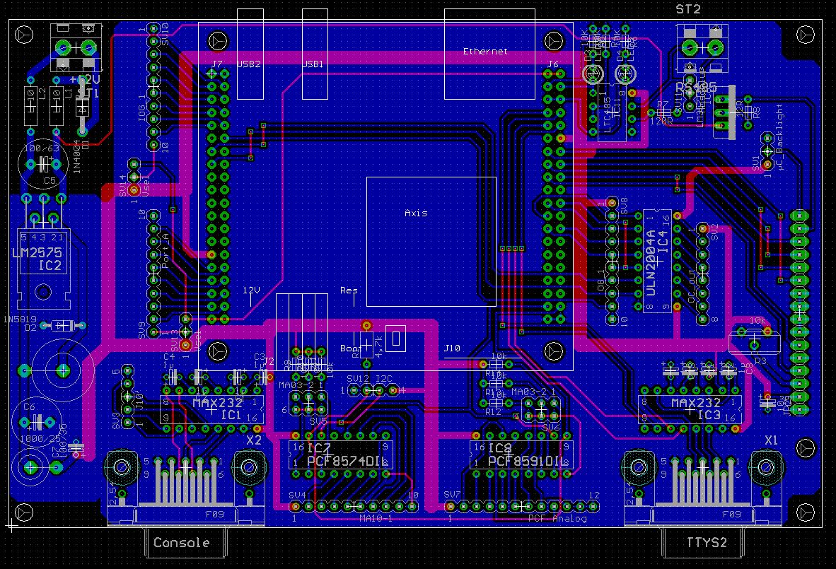 Habe fast nichts anderes erwartet. Ich habe mittlerweile das Fox-Board mit der gesamten Entwicklungs- umgebung (Debian, SDK,usw) im Einsatz. LCD Anzeige funktioniert, I2C funktioniert, RS232 funktioniert, USB Massenspeicher funkioniert... Plane Eval-Board, tue mich mit dem routen nur sehr schwer. Wer richtig Ahnung vom routen hat (Eagle), der solle sich hier melden! Gruß Uwe