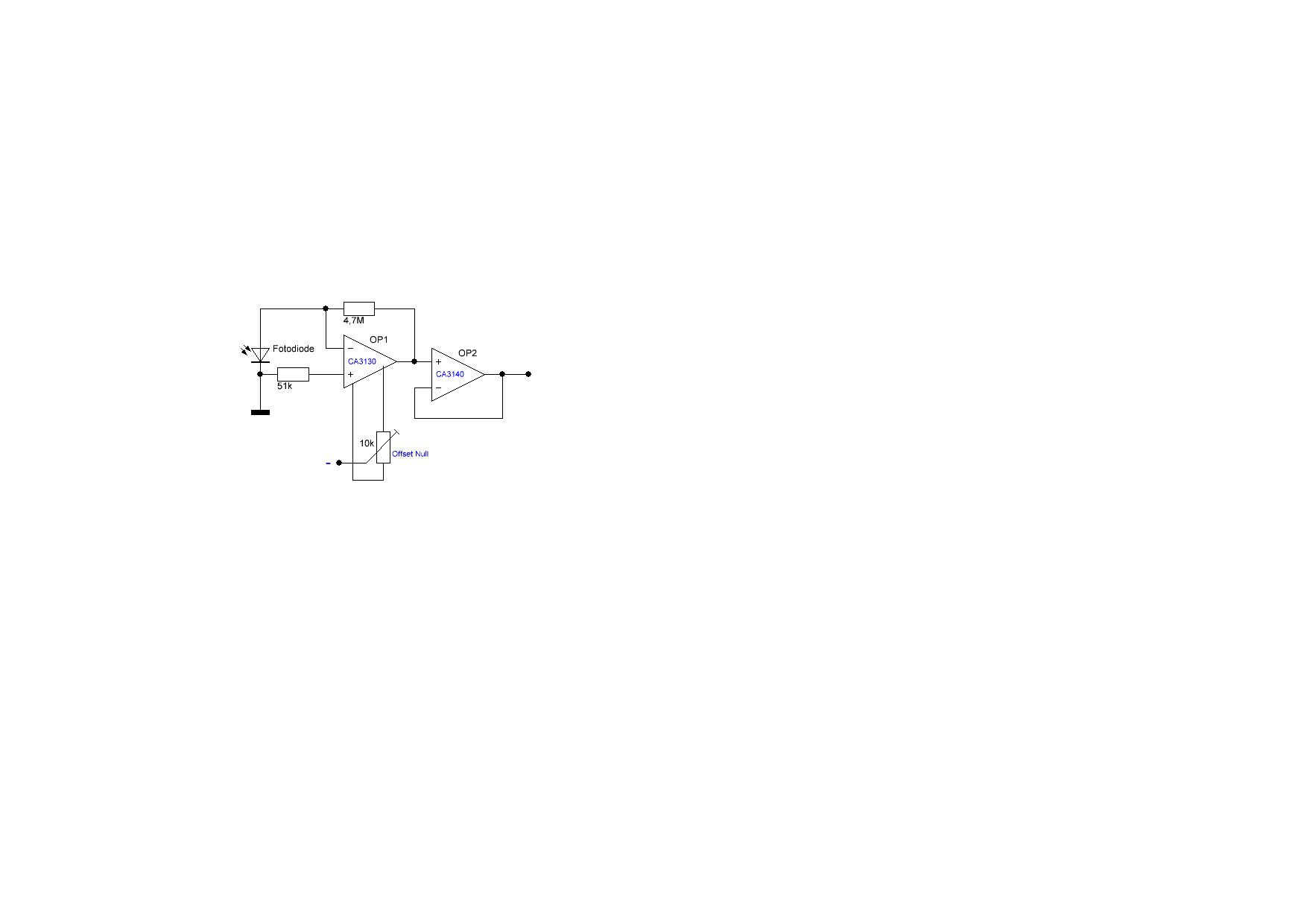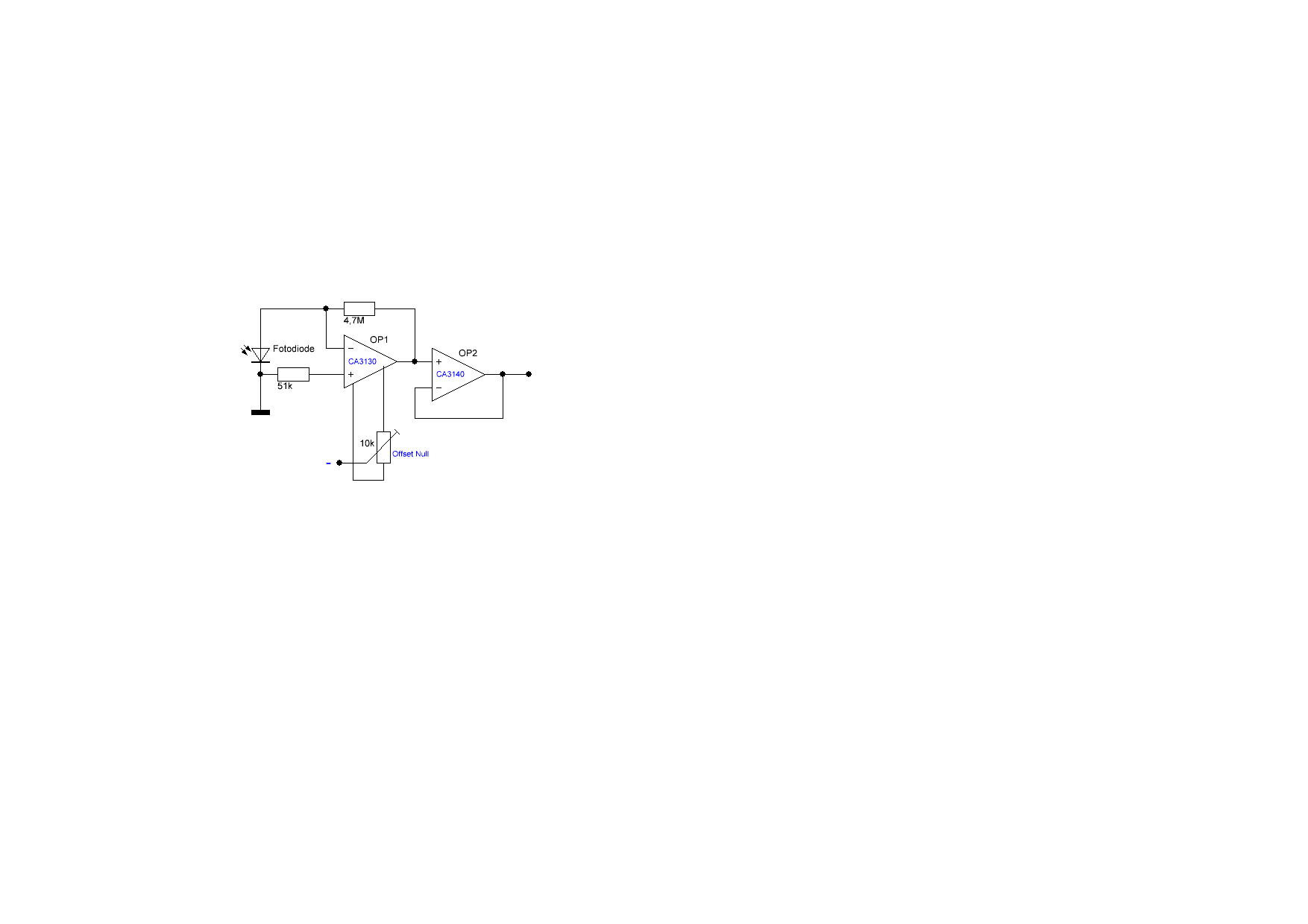 Vielen Dank an euch für die raschen Antworten, @ Helmut S. 1. Ich habe eine Spannungsquelle, bei der ich 5V annehmen würde. Wenn ich eine zweite Spannungsquelle organisieren könnte, wie kann ich die Spannung mit dem negativen Vorzeichen realisieren? 2. Wie kommst du auf die 1/10 bei der Berechnung mit der Wellenlänge und dem Strom? Ich konnte es im Datenblatt nicht so richtig nachvollziehen. 3. Ich hab OPV´s nur als SMD Modelle finden können. Gibt es auch welche für meinen Zweck, die nicht als SMD-Modelle ausgeführt sind? 4. Bei den Kondensatoren, die ich heraussuchen wollte, steht immer eine Nennspannung. Wie bekomme ich diese heraus? Indem ich U=I*R rechne [U=78nA*10MOhm]? Vielen Dank im Voraus Beste Grüße Max