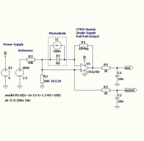 Hallo Helmut, ehrlich gesagt verstehe ich nicht nur "Urefout" nicht, sondern das ganzes Schaltbild. Ich hätte jetzt einfach das Schaltbild aus dem Bestellkatalog verwendet und vlt. noch ein Impedanzwandler zwischen dem Schaltbild der UV-Diode und dem AD-Wandler eingebaut. Aber das halte ich für zu einfach und schön, um wahr zu sein. Ich nehme aber an, dass dein Schaltkreis korrekt ist. Ich würde ihn nur gern verstehen. Die Abbildung zur Ploteinstellung ist mir klar. Es gibt einfach das Verhalten des von dir hoch geladenen Schaltkreises wieder. Berus