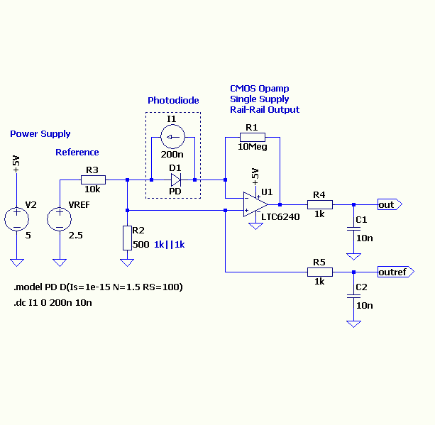 So ähnlich könnte es aussehen. Natürlich gehen auch andere CMOS-Opamps mit Rail-Rail Ausgang. .asc : Schaltplan für LTspice .plt : Ploteinstellungen LTspice ist ein kostenloser SPICE-Simulator von LTC. www.linear.com