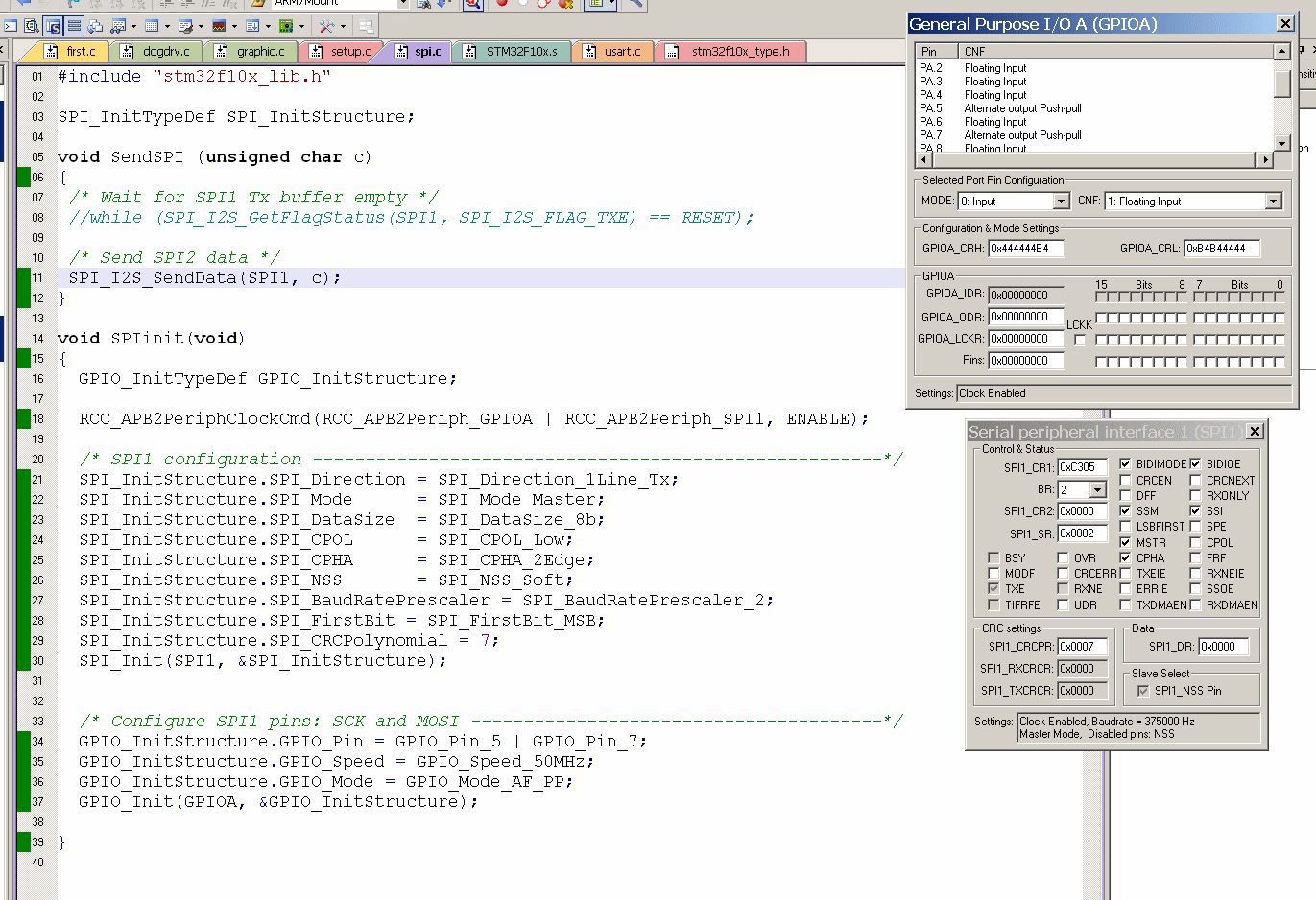Im Anhang ist die Initialisierung der SPI des STMF32F102CB. In der Zeile