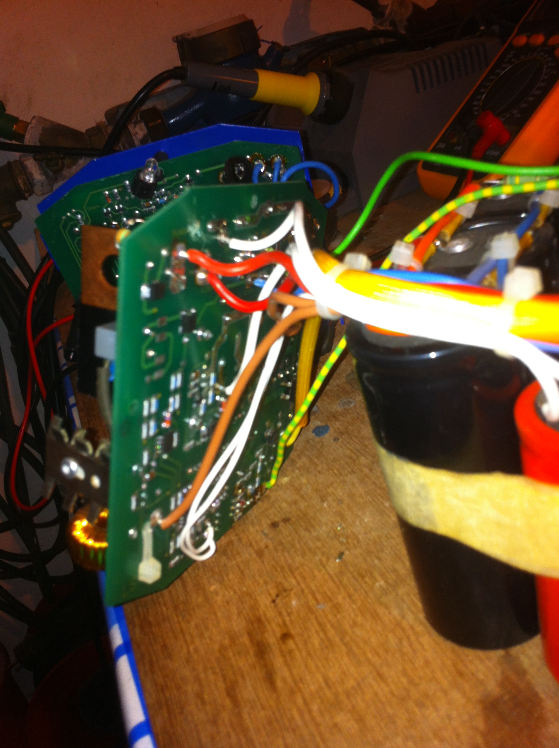 Sorry, aber ich kann deine Kenntnisse nicht einschätzen. Liegt vielleicht auch an den Formulierungen. Was heisst "es geht was durch"? Ohm, kOhm, Mohm (die Finger), oder zeigt das Ohmmeter die Flußspannung an (~0.7V). Es scheint, ein wenig mehr Schaltungsanalyse wird notwendig sein. (Deine Bildformate sind ein Graus für meinen lahmen Netz-Zugang).