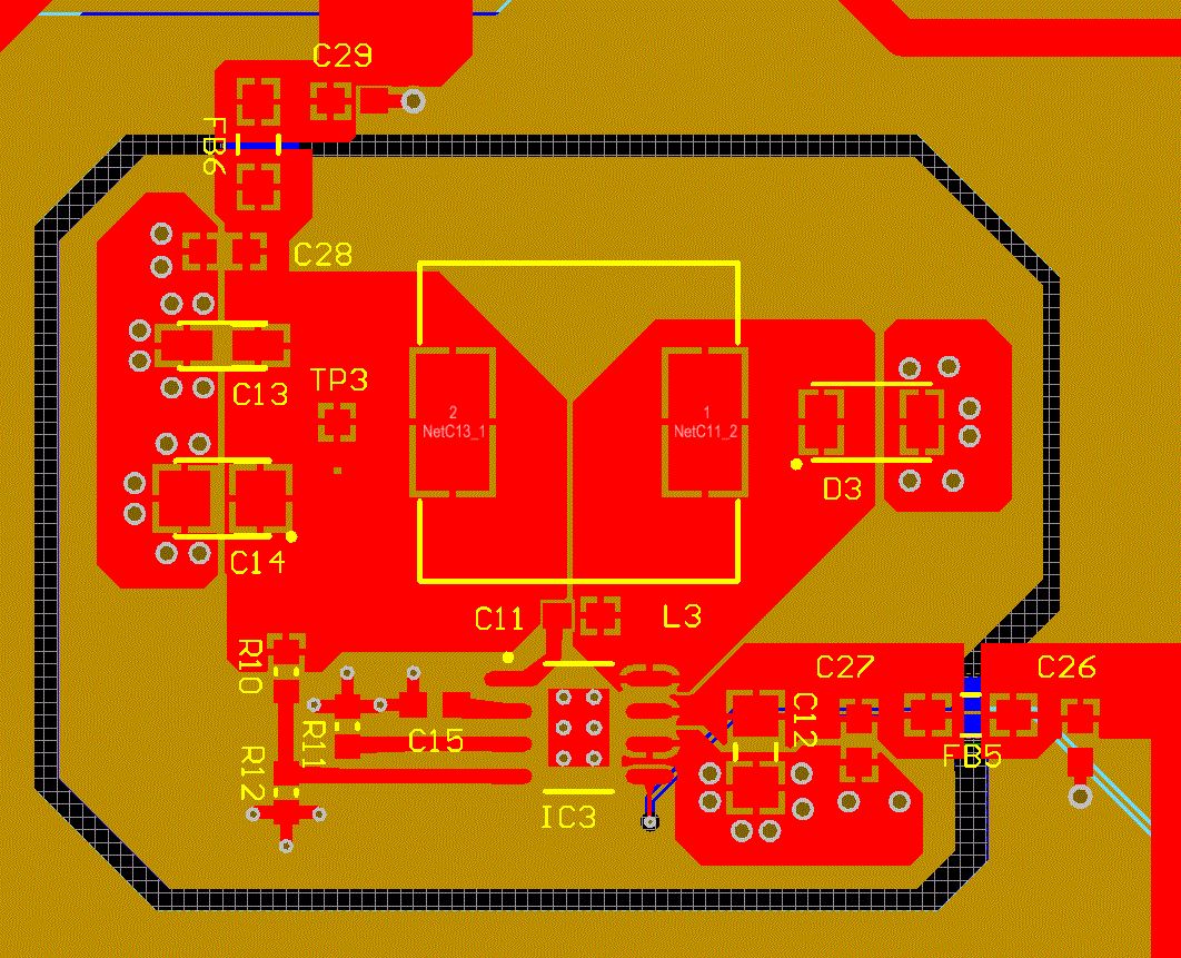 es ist lm22670, und 22690 jeweils 2-2,5A. Das Design an sich hab ich von meinem Vorgänger übernommen. Durch kleine Anpassungen, ohne die Bauteile neu zu orientieren, hab ich das Design vom EMV Störstrahler zu einem EMV mäßig unauffälligem Design umgebaut. Dazu hab ich die Massefläche getrennt und Filter eingebaut. Die Filter sind zweifellos die Maßnahme mit der größeren Wirkung. (auch Nachgwewiesen) aber es ist Meßtechnisch auch noch ein Unterschied zwischen GND Gräben und durchgehendem GND zu sehen (letzteres war die Empfehlung eines Spezialisten) Fakt ist, es ist nicht perfekt, aber gut genug. Mittlerweile würde ich es auch anders routen. Nichtsdestotrotz ist es das Design mit der größten Störamplitudenverringerung.