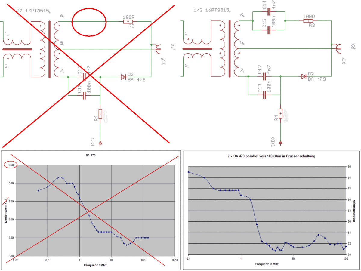 Hallo Marc, meine tägliche Korrektur gib und heute... Viel Mist gemacht. Gestern war es ein 1 KOhm Widerstand ,,, Rot und schwarz bei Kerzenlicht. Ja, meine Brille hatte ich heute auch auf. Diodenstrom und Widerstand liegen doch nahe am Datenblatt :o) LW-MW sieht schon etwas anders aus. Ich habe den Drahtverhau entwirrt, verdrosselt und geschirmt. Tagsüber und ohne QRN(M) und einem 100 Ohm Widerstand, später mehr... Gerade mal ganz oben geschaut... Selbst jenseits 200 MHz nicht ganz falsch. Grüße Werner