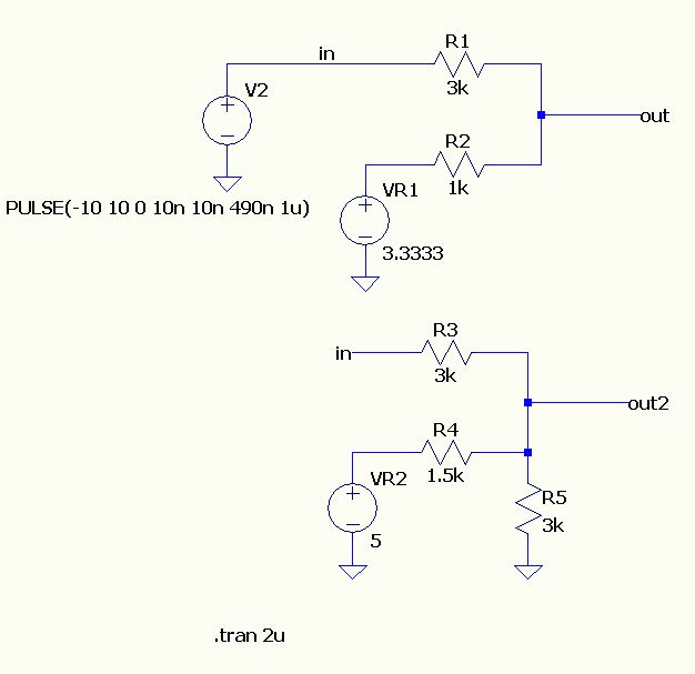 Es sind Digitalsignale mit bis zu 2 MHz, die möglichst unverfälscht durch die Schaltung gehen sollte. Dahinter ist ein Programmierbarer Schmitt Trigger, der auf 0..5V basiert. Das ein Spannungsteiler im Spiel ist, ist mir klar, aber kriegt man die neg. Spannung mit einem nur mit 5V betriebenen OpAmp verarbeitet?