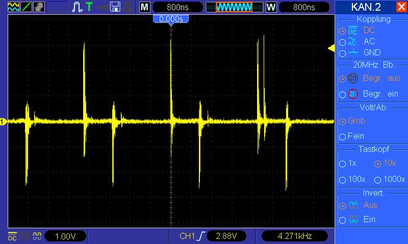 >Ich habe ein Oszilloskop zur Verfügung... Dann zeig doch mal Bilder. Tastkopf auf 10:1 versteht sich. >Wenn ein Kondensator zumindest teilweise hilft, deutet das ja vielleicht >auf ein Problem hin?! Auf jeden Fall!