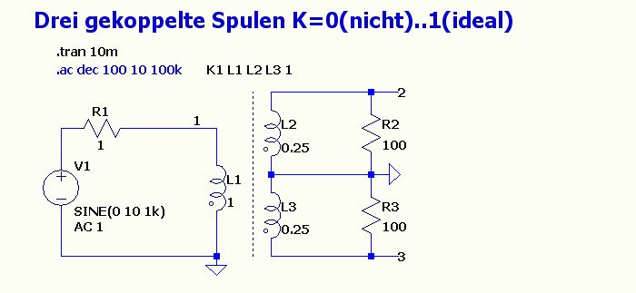 Sieh mal nach dem Stichwort: Kopplungsfaktor 2 Spulen zeichnen, Kopplungsfaktor als Spice-Direktive angeben...