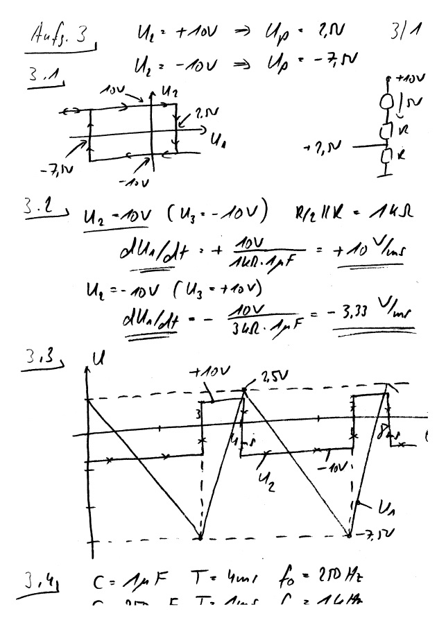 Hallo zusammen, ich weiß nicht genau, ob ich hier damit richtig bin, aber ich verzweifele gerade an eine Klausuraufgabe über OP-Schaltungen. Im Anhang ist die Aufgabe und es geht um den Punkt 3.2: In der Lösung sieht man dass, wenn U2 = 10V dann U3 = -10V und U2 = -10V dann U3 = 10V. Aber warum? Ich sehe es einfach nicht. Woran sieht man, dass U3 = -U2 ist? Wenn U2 mit zB 10V gegeben ist, wie komme ich dann auf U3 = -10V? Mit Maschenumlauf komme ich da nicht weiter. Vielleicht hat jemand von Euch eine Idee? Falls ich diese Anfrage nicht in dieses Forum passt, dann bitte ich um Verzeihung. Vielleicht kennt jemand ein geeignetes Forum dafür. Danke schon mal im Voraus und schönen Sonntag. mfg