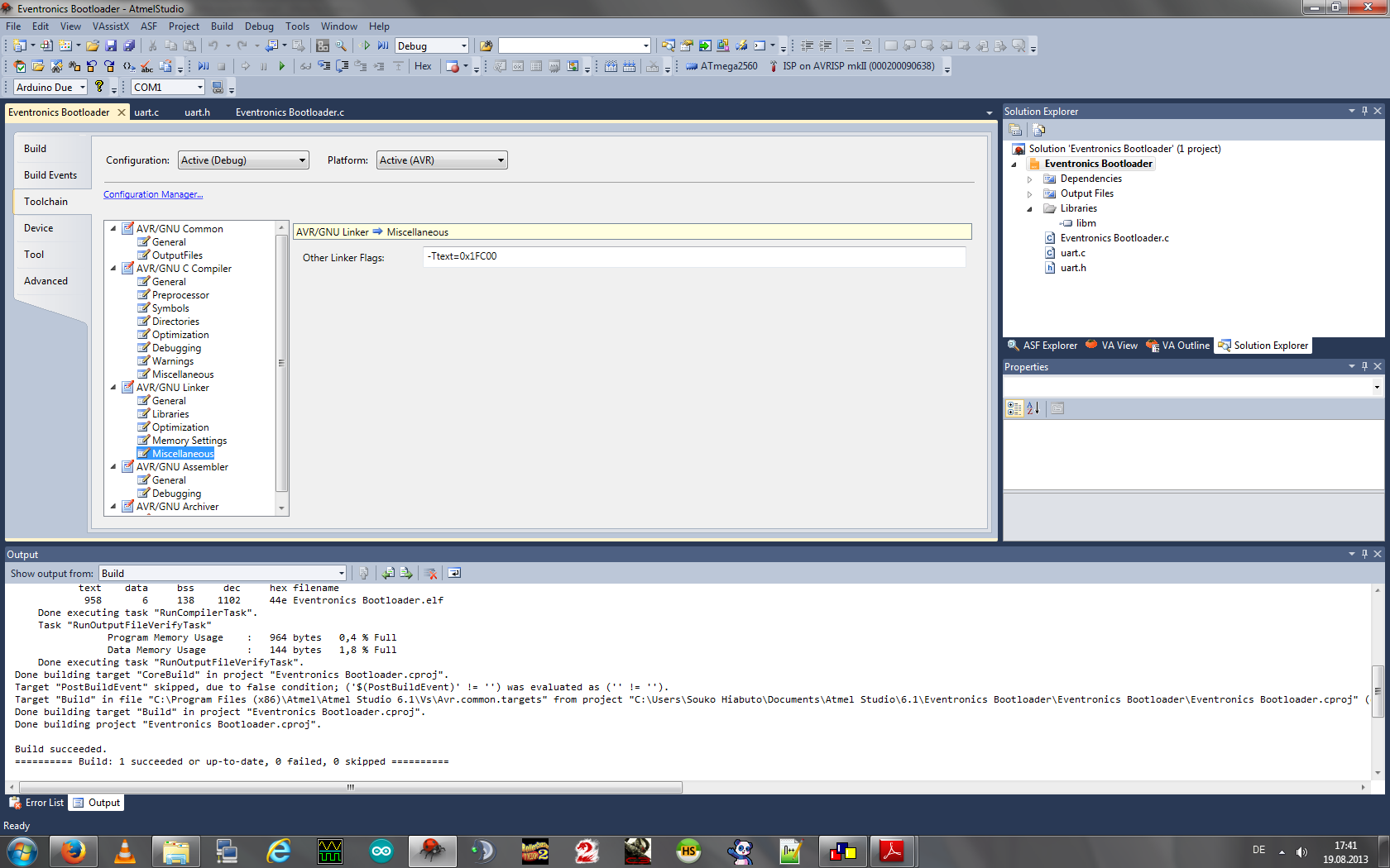 Benutz wird Atmel Studio 6.1 als IDE und USBProg 3.3 mit AVRIPS