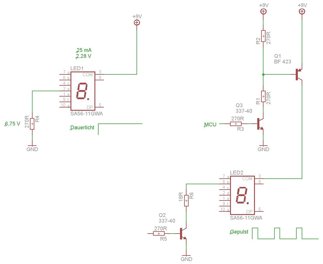 Hier geht's um die Helligkeit von meiner grünen 7-Segment-Anzeige.