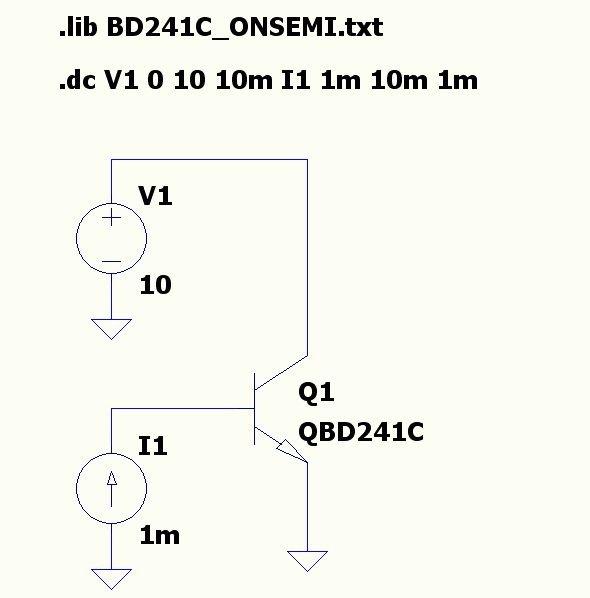Das Model gehört am Besten in den Ordner LTSpice/lib/cmp und dort in die Datei "standard.bjt" Ich habe Dir mal mein Model, so wie es in meiner Datei vorhanden ist angehängt. Kopiere den BD241 aus der BD241C.bjt (öffnen mit Editor) in Deine Datei "standard.bjt" und es funktioniert! mfG Ottmar