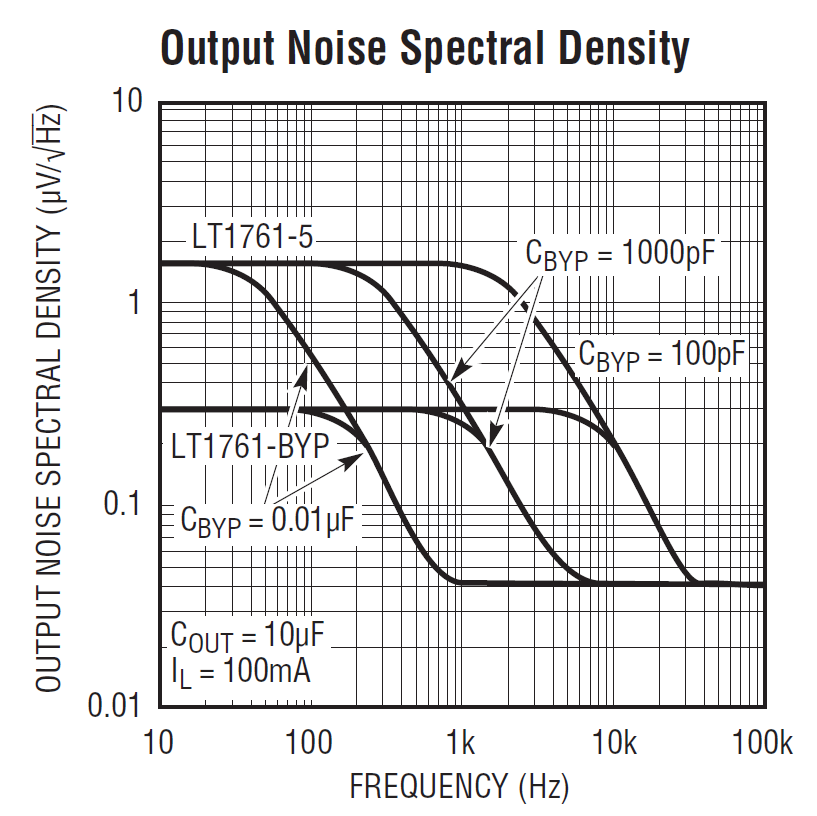 Hi, ich hoffe ihr könnt mir beim Verständnis weiterhelfen. Wie liest man den RMS-Wert des Rauschens im Diagramm der Ausgangsrauschleistungsdichte richtig ab? Beispiel: Im Datenblatt des LT1761 ist für die Bandbreite 10Hz - 100kHz ein Wert von typ. 20µVrms angegeben (COUT = 10μF, CBYP = 0.01μF, ILOAD = 100mA) Wie kann ich diesen Wert jetzt im angehängten Diagramm nachvollziehen? So wie ich das bisher verstanden habe schaue ich bei einer Bandbreite von 9,99kHz und finde dort einen Wert von ~40nV/rtHz. Multipliziere ich diesen Wert mit der Wurzel aus der Bandbreite sqrt(9,99kHz), dann komme ich auf einen Wert von 12,65µV. Wie passt das jetzt mit den typ. 20µVrms zusammen?