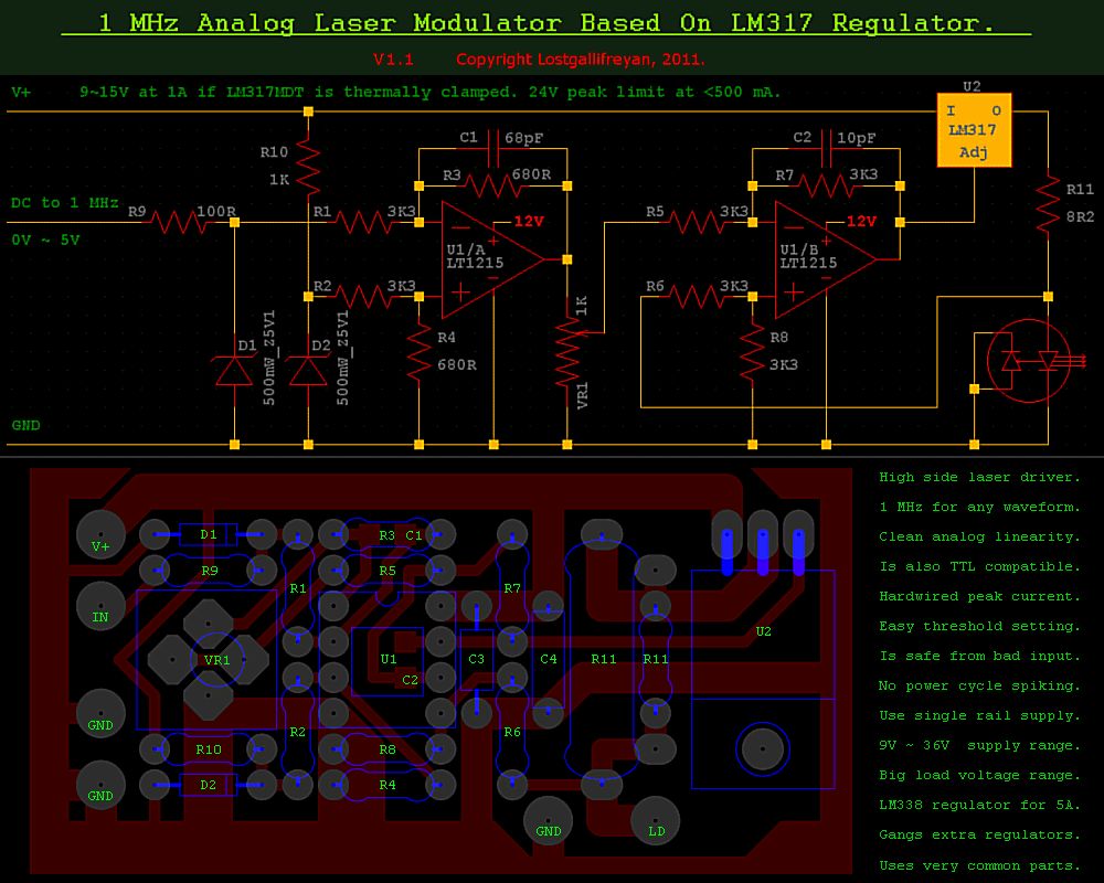 Guten Morgen, Das mit der Sperrspannung kann ich nur bestätigen. Meine erste 405nm Laserdiode ist auch so kaputt gegangen. Gibt es eine Möglichkeit die Anschlüsse irgendwie raus zu klingeln? Mit dem Multimeter wird das nicht gehen, da die Messspannung zu klein ist. Und mit einer Stromquelle geht das auch nicht, da in Sperrichtung kein Strom fließt und dann die volle Betriebsspannung am Ausgang anliegt. Das heisst die Diode stirbt! Man bräuchte wohl eine Stromquelle, die auch gleichzeitig eine sehr niedrige Dropspannung hat und dann auch nur mit der minimalen Versorgung betrieben wird. Sowas hätte ich schon gebrauchen können. Gerade wenn man Dioden aus dem Ausland kauft und kein richtiges Datenblatt bekommt. @Klaus Die Platine ist da. Sieht super aus! Vielen Dank. Ich schau mir als erstes mal die Stromquelle für den Laser an. Vielleicht finde ich den Fehler ja, warum die bei dir nicht geht. Ich halte dich auf dem Laufenden! Gruß, Jens