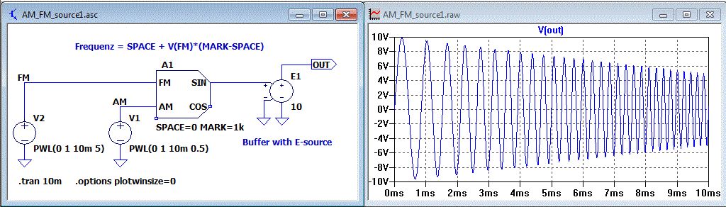Hallo Holler, Im Ordner [SpecialFunctions] gibt es zwei Modulatoren, Nodulate und Modulate2. Die sind für FM und Am gedacht. Siehe Bild(.gif) und Schaltplandatei(.asc). Gruß Helmut