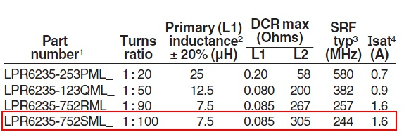 Hi zusammen, Ich möchte gerne in LTSpice eine Schaltung simulieren, in der unter anderem ein Sinus (2V ampl.,) über einen Transformator mit einem Wicklungsverhältnis von 1:100 übersetzt wird. Das Datenblatt des Transformators (LPR6235-752SML)gibt mir aber nur die Induktivität der Primärspule (75uH), nicht der Sekundärspule, die ich in LTSpice zum simulieren brauche. Gibt es eine Möglichkeit, die Induktivität der Sekundärspule über das wicklungsverhältnis rauszubekommen? Bisher habe ich mir ein Beispiel von LTSpice mit einem Trafo angeschaut, dort ist die sekundär-Spuleninduktivität = Quadrat des Wicklungsverhältnisses * Primärspuleninduktivität. Bloß weiß ich nicht, ob das nur ein zufall ist.. Ich hab übrigens noch einen ausschnitt aus dem Datenblatt angehängt. Danke und schönes Wochenende!