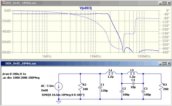 > Mit dem original Onboard-TP-Filter des Moduls? Ja aber! Das Spektrum ist oberhalb 30 MHz nicht besonders sauber und das integrierte Filter fällt erst ab 60 MHz langsam ab. Die verwendeten SMD-Induktivitäten haben teilweise eine Güte von <20. Während z.B. 14 MHz erzeugt werden, entsteht auch ein Signal bei (125-14)MHz. Der Pegel liegt mit eingebautem Filter nur 30 dB unterhalb der 14 MHz. Außerdem gibt es weitere kleine Peaks. > Die Phantomsignale bleiben um mehr als 60 dB unterhalb des Signals, > meist sogar 70 dB. Alle Peaks oberhalb der 14 MHz sollten auf 60-70 dB unter die Signalamplitude gedämpft werden.
