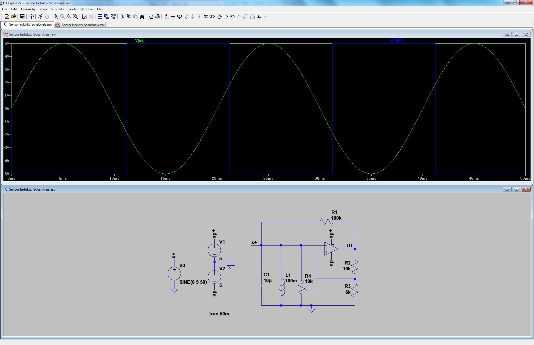Habe in einem Fachbuch eine Schaltung gefunden, die nach kleinen Anpassungen auf die Funktion eines induktiven Sensors passen sollte. Falls es jemanden interessiert, siehe Anhang. Kai Klaas schrieb: > Also hängt jetzt doch etwas an Ue??? Habe ich erst nach deinem Kommentar eingebaut. Stefan schrieb: >> Habe ich mir selbst ausgedacht. > > Moment mal. Was habe ich hier verpasst? > > Du fragst uns, welchem Zweck R1 in der von Dir selbst ausgedachten > Schaltung dient. > > Entwickelt man heutzutage auf diese Art? Hehe, ich habe das mehr oder weniger aus verschiedenen Schaltungen zusammengebastelt, die ich bisher gesehen habe. Das "selbst ausgedacht" sollte eigentlich heißen, dass die Schaltung nicht richtig sein muss, sondern Fehler enthalten kann. Sorry für die Verwirrung.