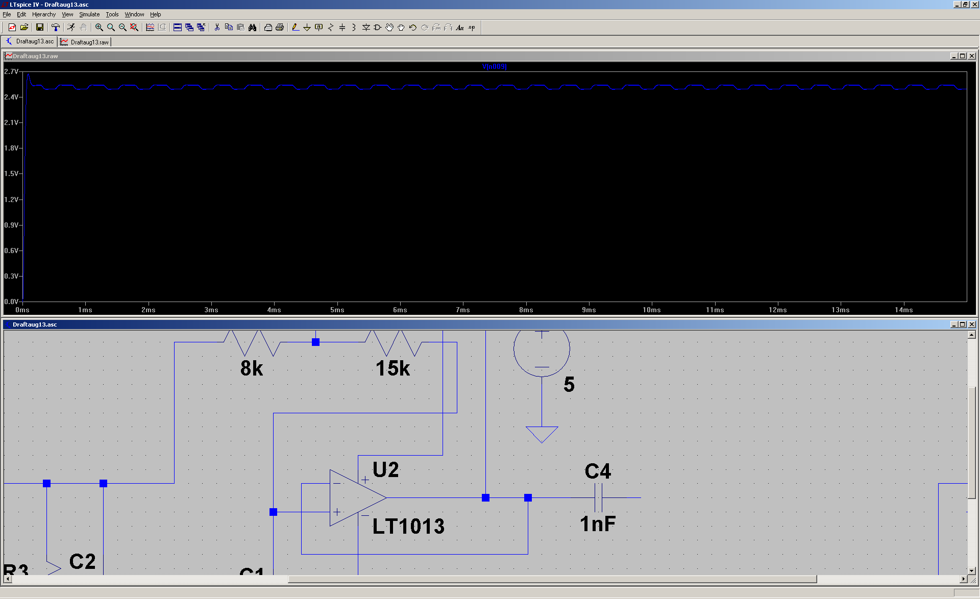 Ich habe eine OPV Schaltung als Tiefpass 2-ter Ordnung, die mir das gefilterte Signal ausgibt. Dieses Signal möchte ich durch einen weiteren OPV dann auf 0-5V verstärken. Dazu möchte ich den DC Anteil vom Tiefpass weg haben, deshalb der C4 am Ausgang. Die Simulation zeigt mir jedoch nach dem C einen DC Anteil. Wie kriege ich es weg, damit ich auf den Verstärker ohne Offset gehen kann?