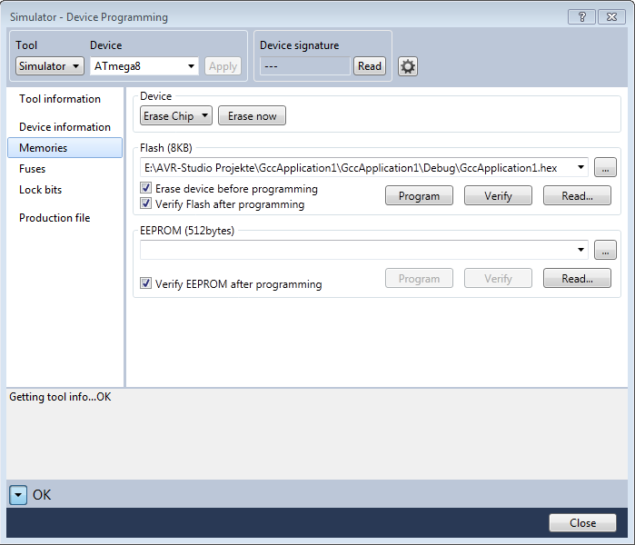 Hallo, unter AVR Studio 4 gibt es die Möglichkeit mit Up/Download Memory den Speicherinhalt vom EEPROM in eine Datei zu speichern. Weiß jemand, wie das unter Atmel Studio 6 funktioniert?