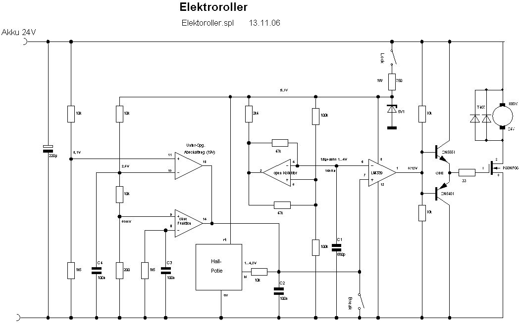 Ich hatte mal den E-Scooter meines Nachbarjungs repariert und dazu die Schaltung des Reglers aufgenommen. Als Poti war dort ein Hall-Poti verbaut - geht aber auch mit einem normalen Poti.