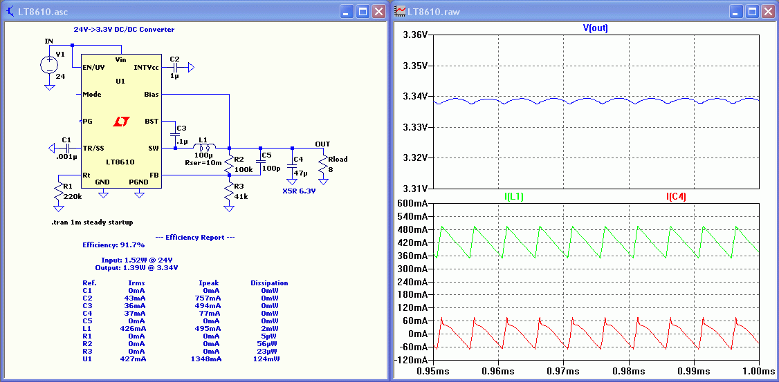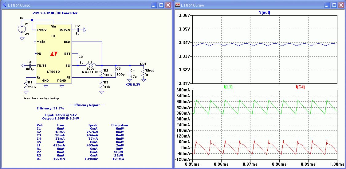 Hallo, ich bin auf der suche nach einem effektiven Schaltregler, der mir aus 24V 3.3V für einen stm32f4 macht. Ich habe meine Daten ( Vin_min: 13V, Vin_max: 24V, Iout: 0.5A, Vout: 3.3V )bei Texas Instruments in die WEBENCH eingegeben und mir das effektivste Design ausgesucht: das war der TPS54335. Laut der WEBENCH von TI hat der Schaltregler bei Vin:24V und Iout:0.44A einen Wirkungsgrad von 95%. Wenn ich mir dann den vorgeschlagenen Schaltplan anschaue ist mir aufgefallen, dass der Schaltregler mit 50KHz arbeitet. Ich muss zugeben ich habe noch nicht so viele Erfahrungen mit Schaltreglern, aber bis jetzt habe ich immer gelesen, dass eine Frequenz zwischen 150KHz und 250KHz das optimalste wäre, oder liege ich da falsch? Diese niedrige Frequenz erfordert eine ziemlich große Spule: 390uH und da eine gute geschirmte zu finden ist schwer... Sollte ich eine höhere Frequenz von zb 150...200KHz wählen ? Wieweit beeinflusst das die Effizienz des Schaltreglers ? 50KHz wären ja aus EMV sicht sicherlich besser würde ich mal behaupten. Das ganze ist für ein privates Projekt, ich möchte es aber vernünftig aufziehen, es sollte also auch durch alle Prüfungen durchkommen. Marcus