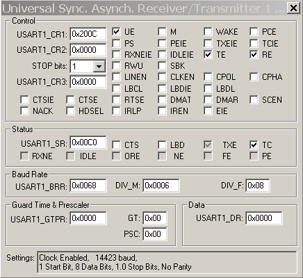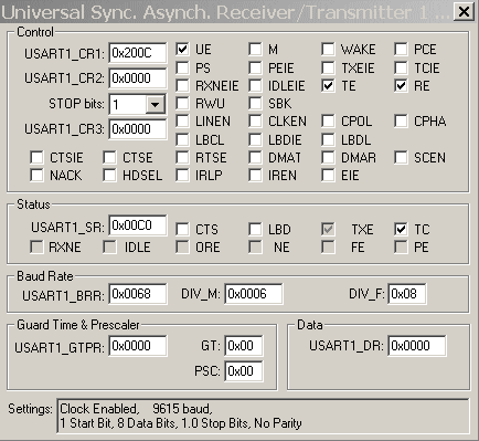 In der Initialisierung wird nicht das Baudatenregister(BRR) angegeben,