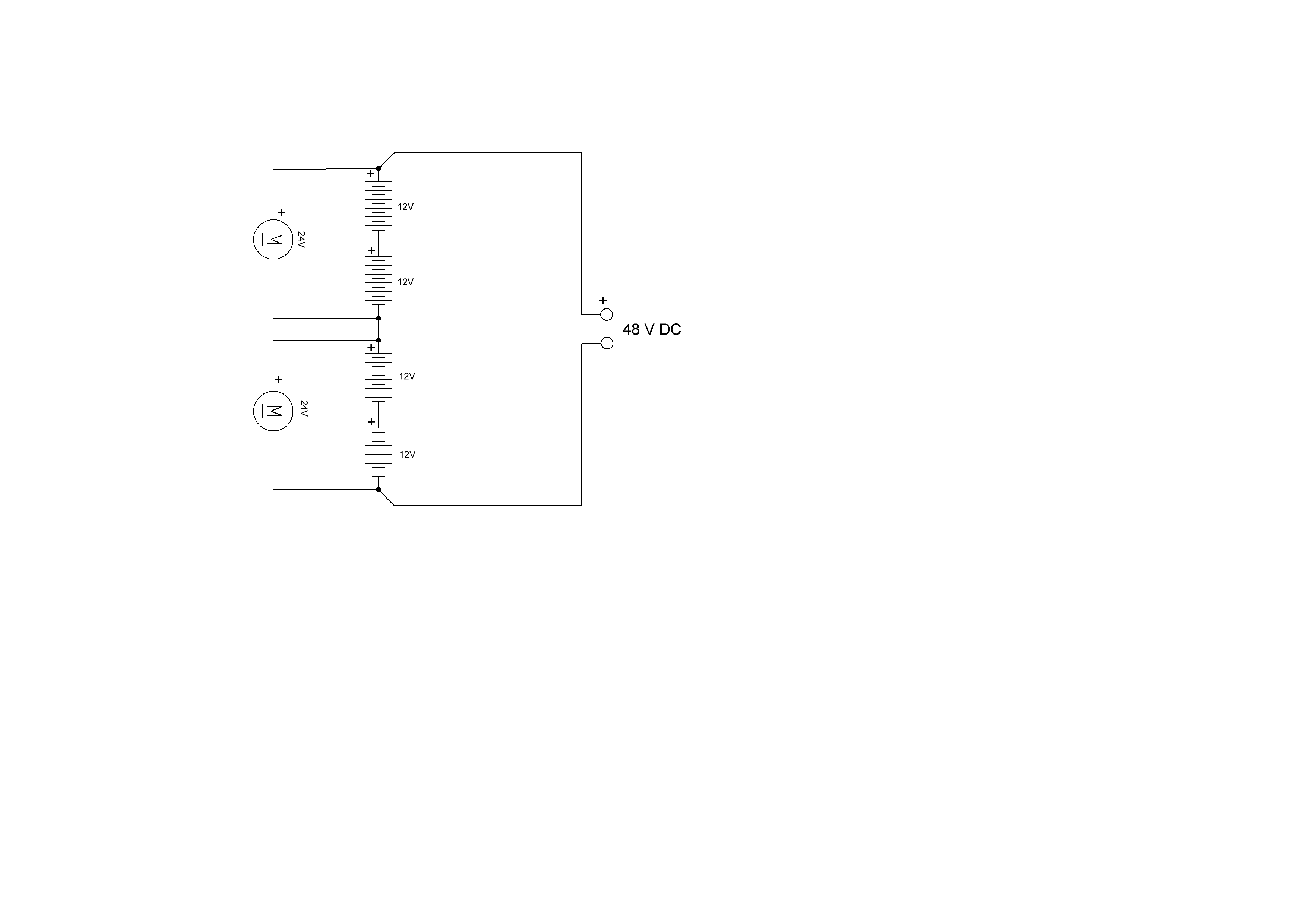 Andreas R. schrieb: > Hallo. > > Ich habe einen Motor der eine Betriebsspannung von 48V hat und aus vier > 12V Batterien in reihe betrieben wird. Nun wollte ich zwei 24V > Lichtmaschinen parallel zu zwei 12V Batterien anschließen. So ungefähr: (Prinzipschaltbild) Kurt