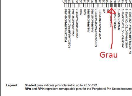 Nee, Die RPn Pins sind die die Fett geschrieben sind. Legend: Shaded pins indicate pins tolerant to up to +5.5 VDC. RPnand RPInrepresent remappable pins for the Peripheral Pin Select features.