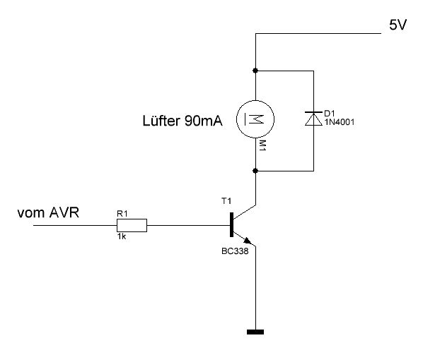 someone schrieb: > Noch eine kleine Anmerkung: Die Diode ist eine Gleichrichterdiode und > als solche zu langsam, um sie effektiv für induktive Lasten einzusetzen. > Kann funktionieren, muss aber nicht. Hier ist es besser, auf schnell > schaltende Typen zu setzen. Noch eine weitere kleine Anmerkung: Das ist ein Luefter mit eingebauter Elektronik und damit keine induktive Last daher ist die Diode sinnlos. Die Spulen im Inneren des Luefters sind schon mit Freilaufdioden beschaltet.