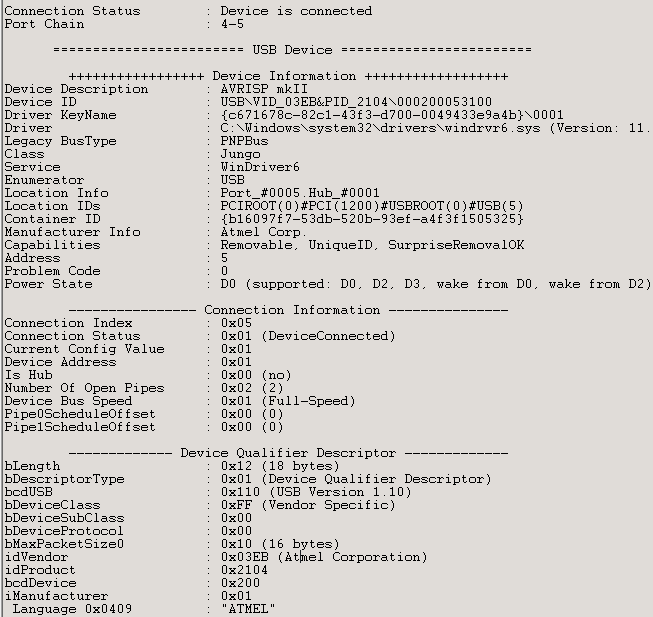 Hallo, ich habe einen Programmer Atmel AVR-ISP MK2. Ich möchte ihn mit einer USB-Verlängerung (ca. 15m) mit dem PC verbinden. Es gibt hierfür z.B. von Logilink USB Verlängerung über Netzw.6: http://www.voelkner.de/products/187645/Logilink-USB-Verlaengerung-ueber-Netzw.6.html Hat jemand Erfahrungen damit, ob das klappt? Vor allem: mit welchem USB-Protokoll arbeitet der Programmer? In der Beschreibung des Programmers wird folgendes geschrieben: bcdUSB: 1.1 bcdDevice: 2.0 Hat er USB 1.1 oder 2.0? Gruß Martin
