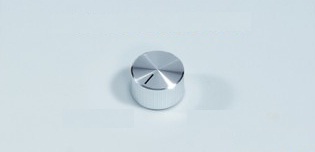 Knopf. Aluminium mit Strich. Hersteller beispielsweise Mentor. Wenn man jetzt noch wüsste, wie gross es ist und welcher Achsdurchmesser, könnte man sogar den passenden raussuchen, da du das aber NATÜRLICH nicht gemessen und hingeschrieben hast, suchst du jetzt selber. http://www.conrad.de/ce/de/product/183688/?insert_kz=VQ&hk=SEM&WT.srch=1&WT.mc_id=google_pla&gclid=CKKf6ez_mroCFQ0Q3godPykAlw