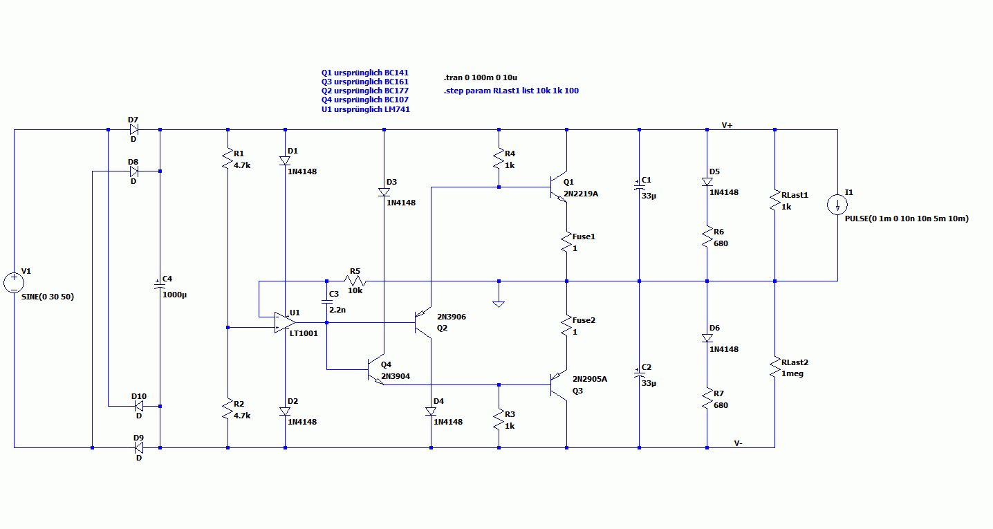 Sinnvoller ist doch die Schaltung mit einer DC Quelle zu speisen, Lastwechsel / Lastsprünge zu simulieren. So sollte sie auch verwendet werden (ohne jetzt auf die Details einzugehen)