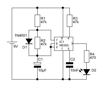 Hallo, ich habe eine einen Astabilen Multivibrator mit einem NE555 aufgebaut. R1 und R2 habe ich jeweils durch ein Potenziometer ersetzt. Die Schaltung blinkt auch und durch drehen des Potenziometers ändert sich das Verhältniss von Ein- zu Ausschaltzeit. Jetzt habe ich parralel zu R2 eine Diode angeschlossen, denn laut mehreren Seiten im Internet sorgt diese dafür, dass Ein- und Ausschaltzeit gleich groß sind. Bei mir vergrößert sich jedoch der Unterschied von Ein- zu Ausschaltzeit. Also genau das Gegenteil von dem, was eigentlich passieren sollte. Weis jemand woran das liegen könnte? Danke Loetman