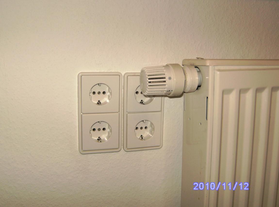 ich würde eher sagen, was war zuerst da, die 4 Steckdosen oder der Heizkörper? danach erst kann man philosophieren, wer was verkehrt gemacht hat! wobei die Anordnung der 4 Steckdosen so keinerlei Norm entspricht, die ich kenne, entweder alle senkrecht überein- oder waagerecht nebeneinander! das Foto wurde in Bayern in der Nähe von Würzburg gemacht, also schon zivilisierte und gut betuchte Gegend! hier aber noch ein Real-Foto aus einer E-HV, nur wo liegt da der brenzliche Fehler? ein zweites Foto sollte die Erleuchtung geben